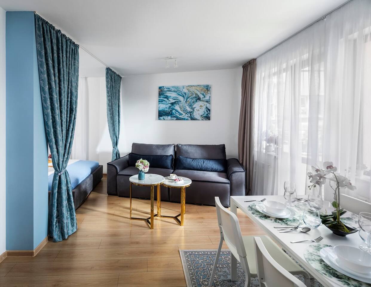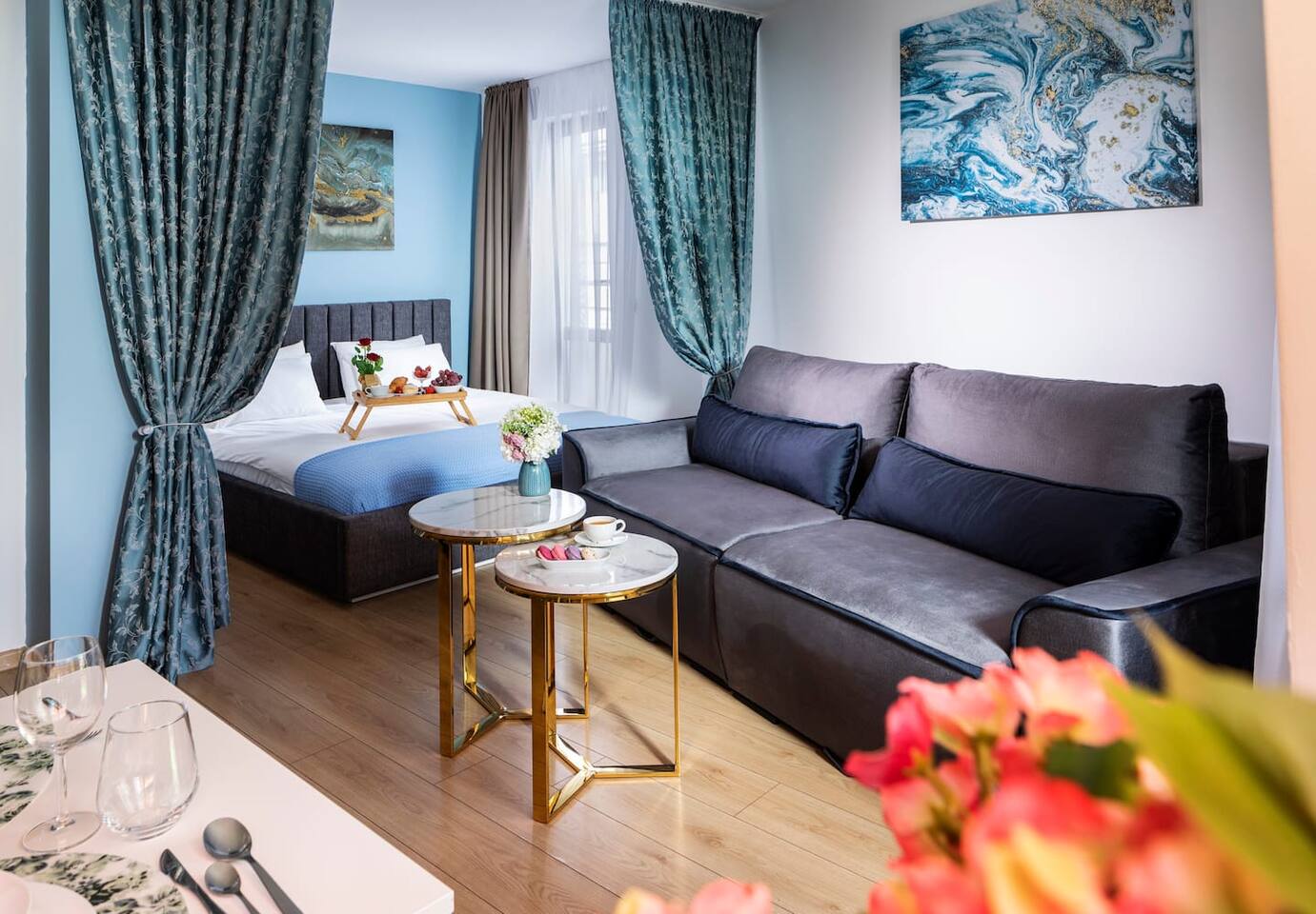 Please note the 3rd bed for the 5th person is rollaway bed, 75x180cm with steel frame, comfortable and high quality foam mattress. ***The rollaway bed is only provided upon 12 hours advance request and at additional charge.*** Must climb stairs - The apartment is on the first floor (above ground floor) and therefore guests will need to climb 1 spiral staircase with 22 steps. Please note that from time to time, you will hear passing airplanes, but the noise will only last for a very few seconds. The property is very much garden style apartment because of the very big green terrace, and therefore insects and bugs are likely to sneak inside the apartment when doors/windows are open. Cleaning before checkout (during your stay) is provided upon request and at extra fee. The cot (crib), baby dining/feeding (high) chair, children's tableware, children's books and toys, changing table and baby bath are only provided upon request and at extra fee. Guests requesting extra bed linens have to pay extra charge. Any guest request may require the guest to pay extra. Periodically for several days there will be no artificial grass on the terrace due to replacement with new. The greeneries on the terrace are typically being renewed multiple times per year or if needed more or less frequently based on the season and the life of greeneries. Despite our huge efforts to protect from cockroaches - we typically spray against cockroaches every 5 days (as per recommendation of the pest control experts) and we also have a specialised pest control come for regular deep treatment to have our apartment protected from cockroaches, because not all of the apartment in the building are treated regularly enough against cockroaches, just like majority of the buildings in Sofia city centre there is still at least a slight chance for cockroaches. The apartment is “deep cleaned” on a regular basis which is NOT after every guest stay. That means you may experience finding specific details in the apartment that are pending to be taken care of which will be during the scheduled deep cleaning which most likely is due to be done in the next few days. You can request before or during your stay a deep cleaning to be done before the regular deep cleaning schedule, and that will be done at an extra charge of 750 BGN payable by the guest in addition to the already paid total price of the reservation. Also, the deep cleaning duration could be up to 12 hours.